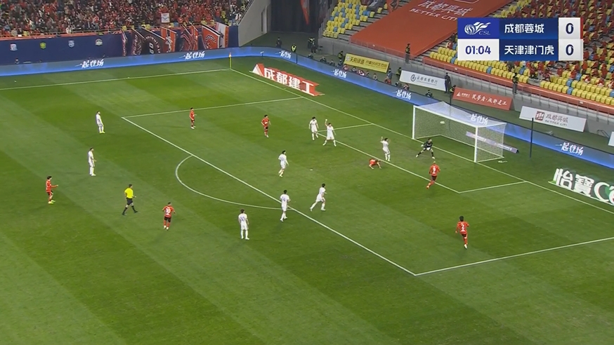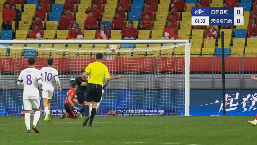 半場-胡荷韜助攻韋世豪頭球吊射破門周定洋染紅 蓉城暫1-1津門虎