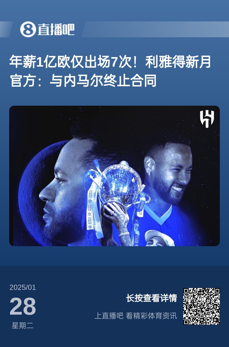 要錢何用??jī)?nèi)馬爾在新月年薪1億出場(chǎng)7次,免簽桑托斯1個(gè)月即追平