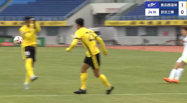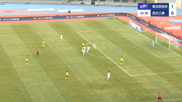 上半場補時3分鐘,青島西海岸1-0武漢三鎮(zhèn)。