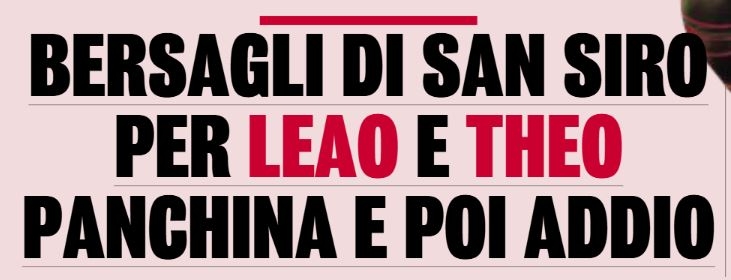 03月04日訊 意大利記者Giovanni Capuano發(fā)布推文,引用意媒Gds的報(bào)道,表示AC米蘭的特奧與萊奧都有可能夏窗離隊(duì)。
