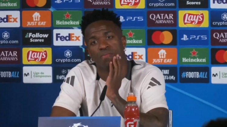 維尼修斯出席對(duì)陣馬競(jìng)的新聞發(fā)布會(huì),期間被問(wèn)了金球獎(jiǎng)的話題。