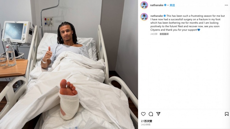 曼城后防大將阿克在今日通過(guò)社媒曬出自己術(shù)后的照片,表示自己已經(jīng)成功接受手術(shù)。