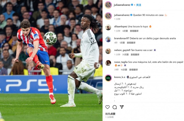 阿爾瓦雷斯也在賽后通過社媒曬出自己的進(jìn)球瞬間,并配文:“回到主場(chǎng)之后還有90分鐘?!?/p>