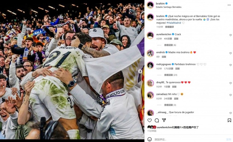 本場(chǎng)比賽迪亞斯破門(mén),賽后他也在個(gè)人社媒曬出瘋狂慶祝進(jìn)球的照片,配文寫(xiě)道:“多么神奇的伯納烏夜晚,進(jìn)球獻(xiàn)給你們,皇馬球迷們,現(xiàn)在專(zhuān)注于下回合比賽。你們是最棒的!”