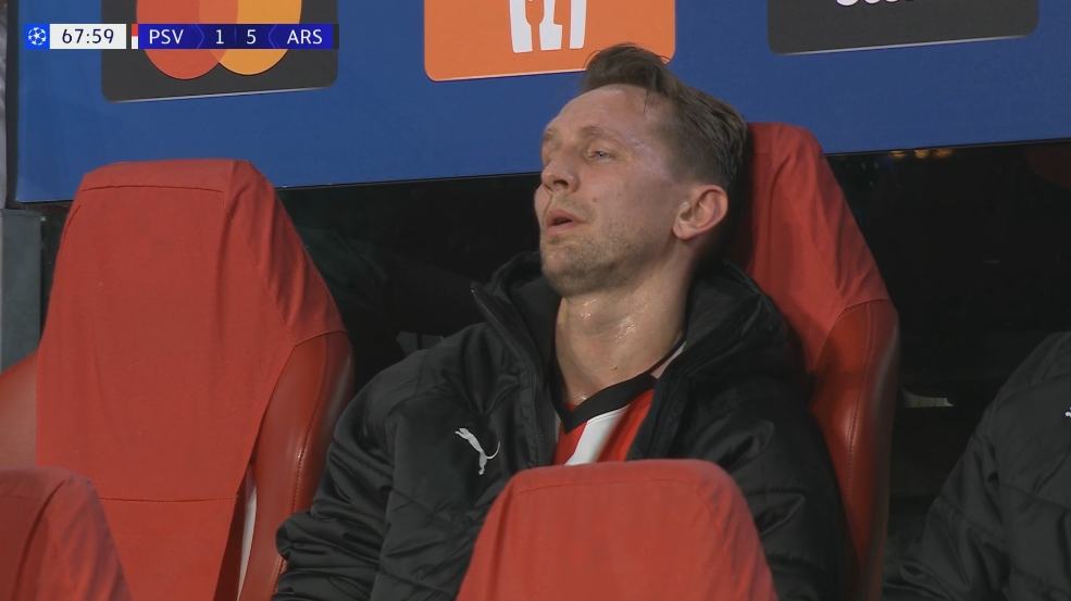 被打懵了,盧克-德容被換下后直接葛優(yōu)癱在替補席