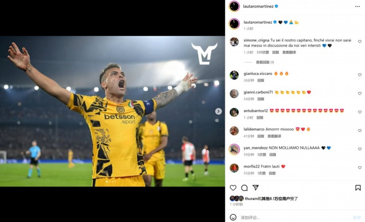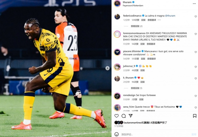 本場(chǎng)比賽勞塔羅與小圖拉姆雙雙破門(mén),賽后兩人也分別在個(gè)人社媒曬出本場(chǎng)進(jìn)球后怒吼慶祝的照片。
