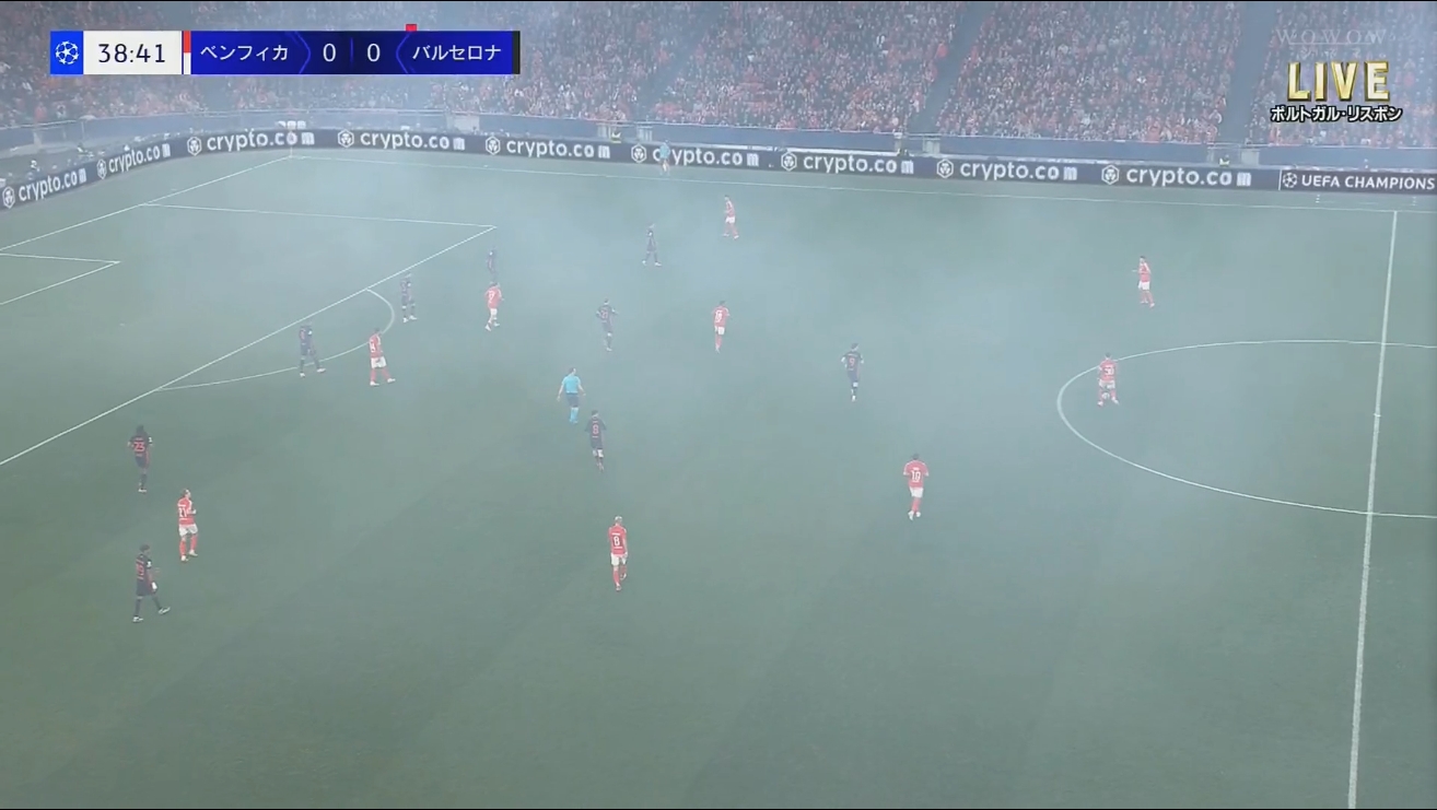 本菲卡球迷燃放煙花,現(xiàn)場煙霧繚繞