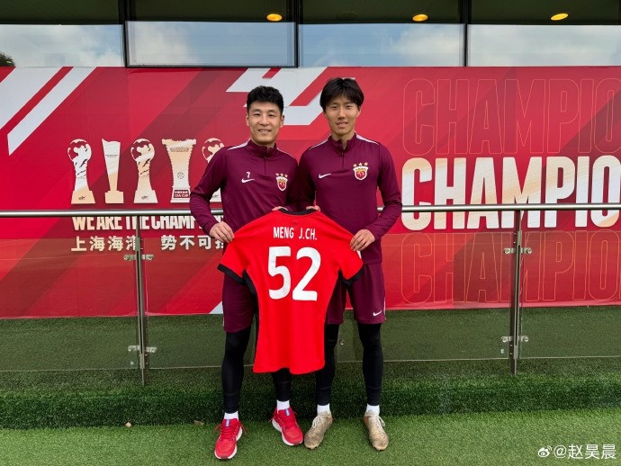 趙昊晨透露,在海港今天的訓練開始前,隊長武磊代表全隊向孟敬朝送上鼓勵及祝賀,隨后兩人一起持52號球衣合影、留念。