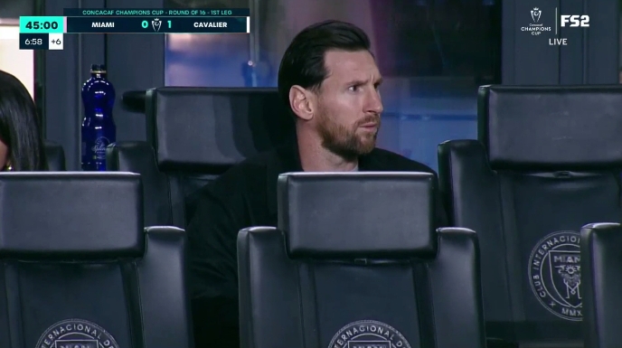 在上半場(chǎng)補(bǔ)時(shí)階段,客隊(duì)球員阿特金森破門,但是裁判觀看VAR后判定進(jìn)球越位。邁阿密被進(jìn)球時(shí)梅西在場(chǎng)邊愁容滿面,VAR檢查時(shí)梅西也是坐不住了站了起來(lái)。