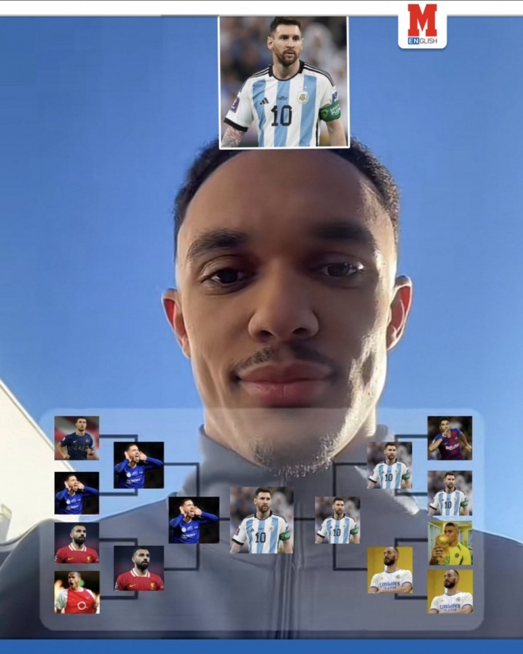 隨后,阿諾德在阿扎爾和薩拉赫之間選了阿扎爾;梅西和本澤馬之間選了梅西;最后阿扎爾與梅西之間,阿諾德選擇了后者。
