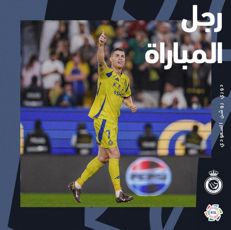 3月8日訊 沙特聯(lián)第24輪,利雅得勝利2-2利雅得青年人。賽后沙特聯(lián)官方宣布,C羅當(dāng)選全場最佳球員。
