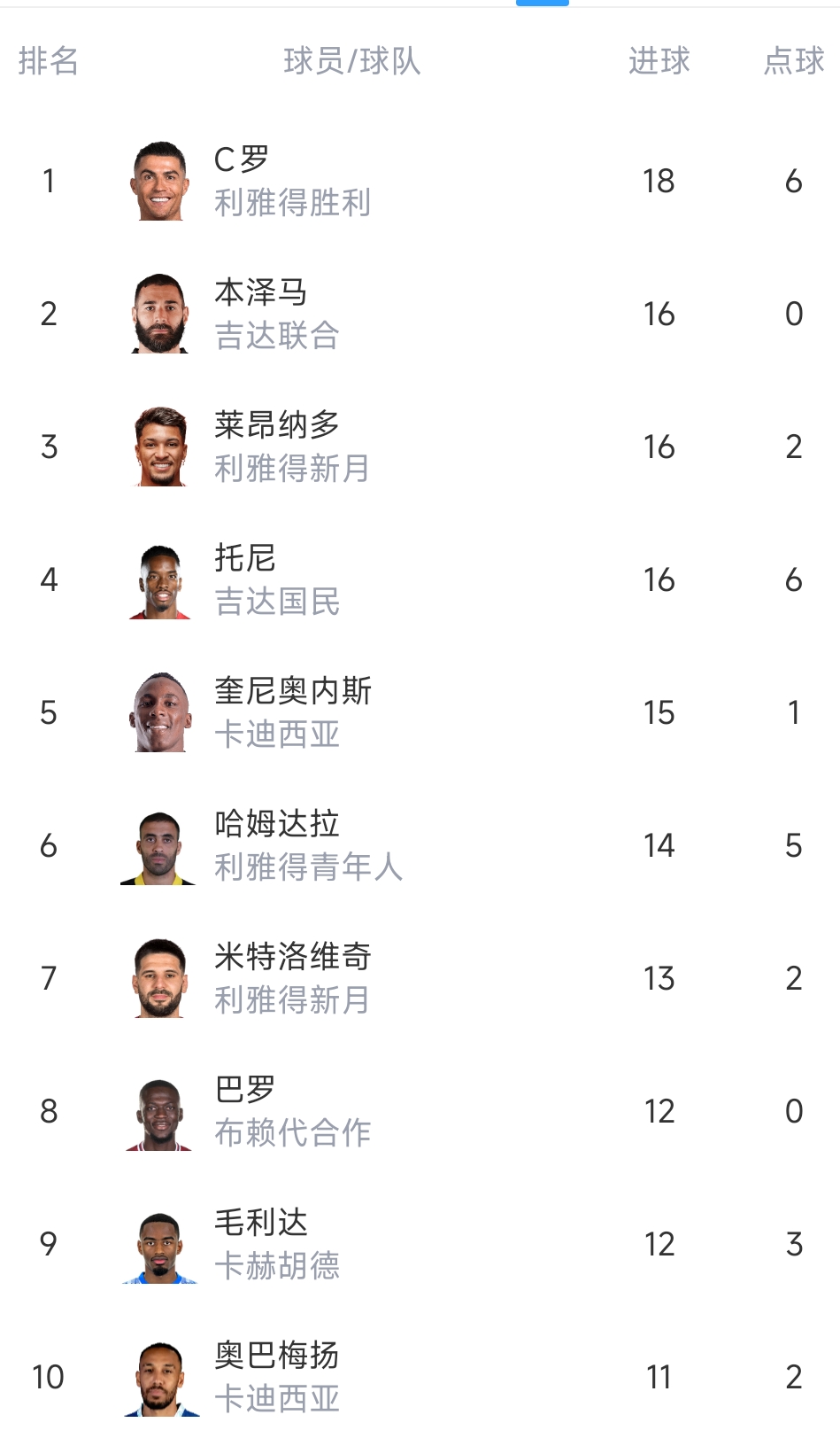 03月08日訊 沙特聯(lián)第24輪,十人利雅得勝利2-2利雅得青年人。最新沙特聯(lián)射手榜,C羅18球領跑,本澤馬、萊昂納多、托尼16球并列第二,奧巴梅揚11球第十。 標簽: 足球 C羅 利雅得勝利 五洲