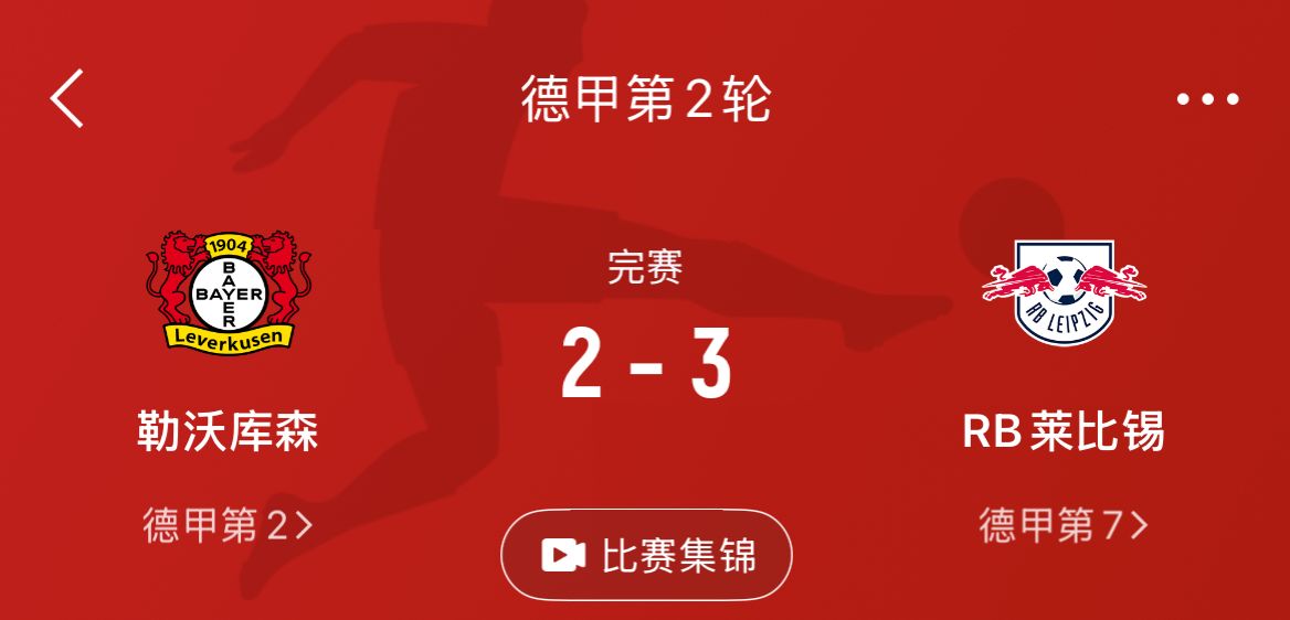 這也是勒沃庫森本賽季德甲的第二場失利,他們的23輪不敗就此終結(jié),上一次藥廠在德甲輸球還要追溯到去年9月初,當(dāng)時他們主場2-3不敵萊比錫,此后藥廠23輪德甲15勝8平不敗。
