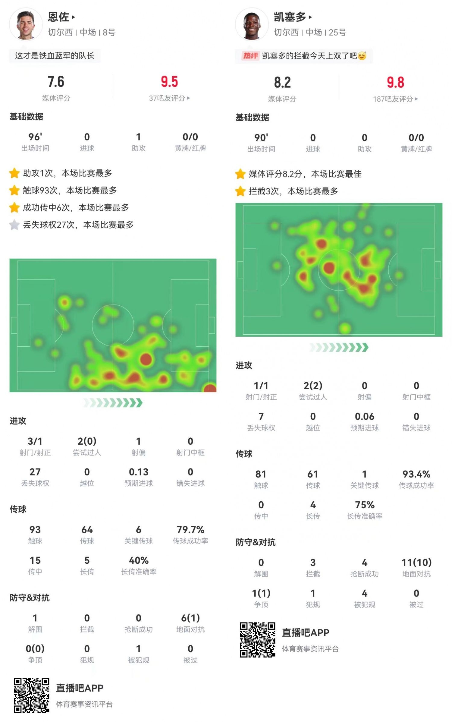 英超第28輪,切爾西1-0擊敗萊斯特城,切爾西2億雙后腰均首發(fā)出戰(zhàn)打滿全場(chǎng)。