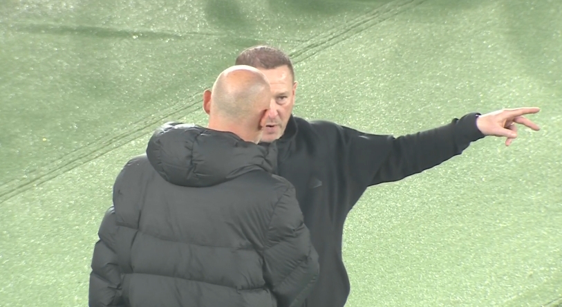 聊啥呢?穆斯卡特賽后與橫濱主帥寒暄,后者曾任英格蘭切爾西助教