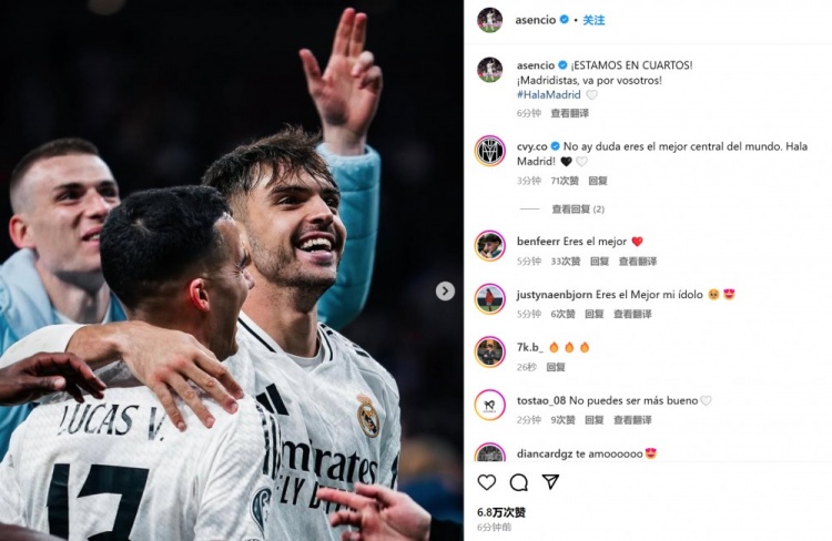 他也在賽后通過(guò)社媒曬出晉級(jí)后的慶祝照,并喊話球迷:“我們晉級(jí)歐冠八強(qiáng)了!馬德里主義者們,這是獻(xiàn)給你們的!”