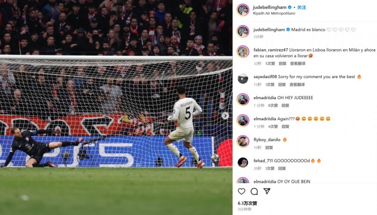 他在點(diǎn)球大戰(zhàn)成功命中,也在賽后通過(guò)社媒曬出破門瞬間照,并配文:“馬德里是白色的????????????????????”