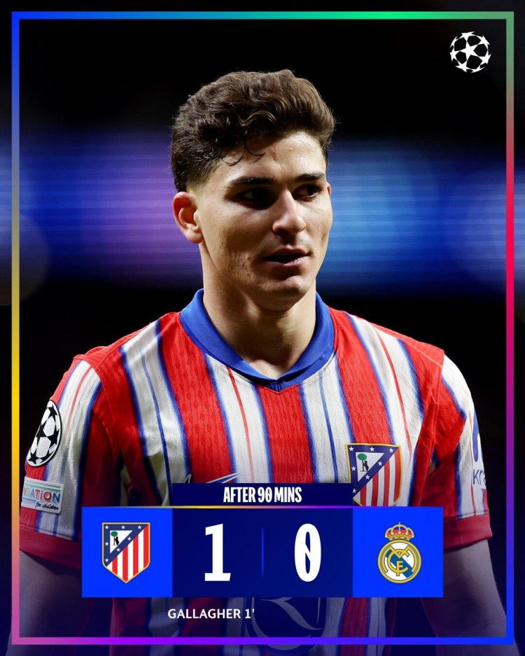 第1分鐘,馬競反擊,德保羅分邊,西蒙尼右路傳中,前點(diǎn)一漏,加拉格爾門前鏟射破門,馬競?cè)〉脡艋瞄_局,1-0!↓