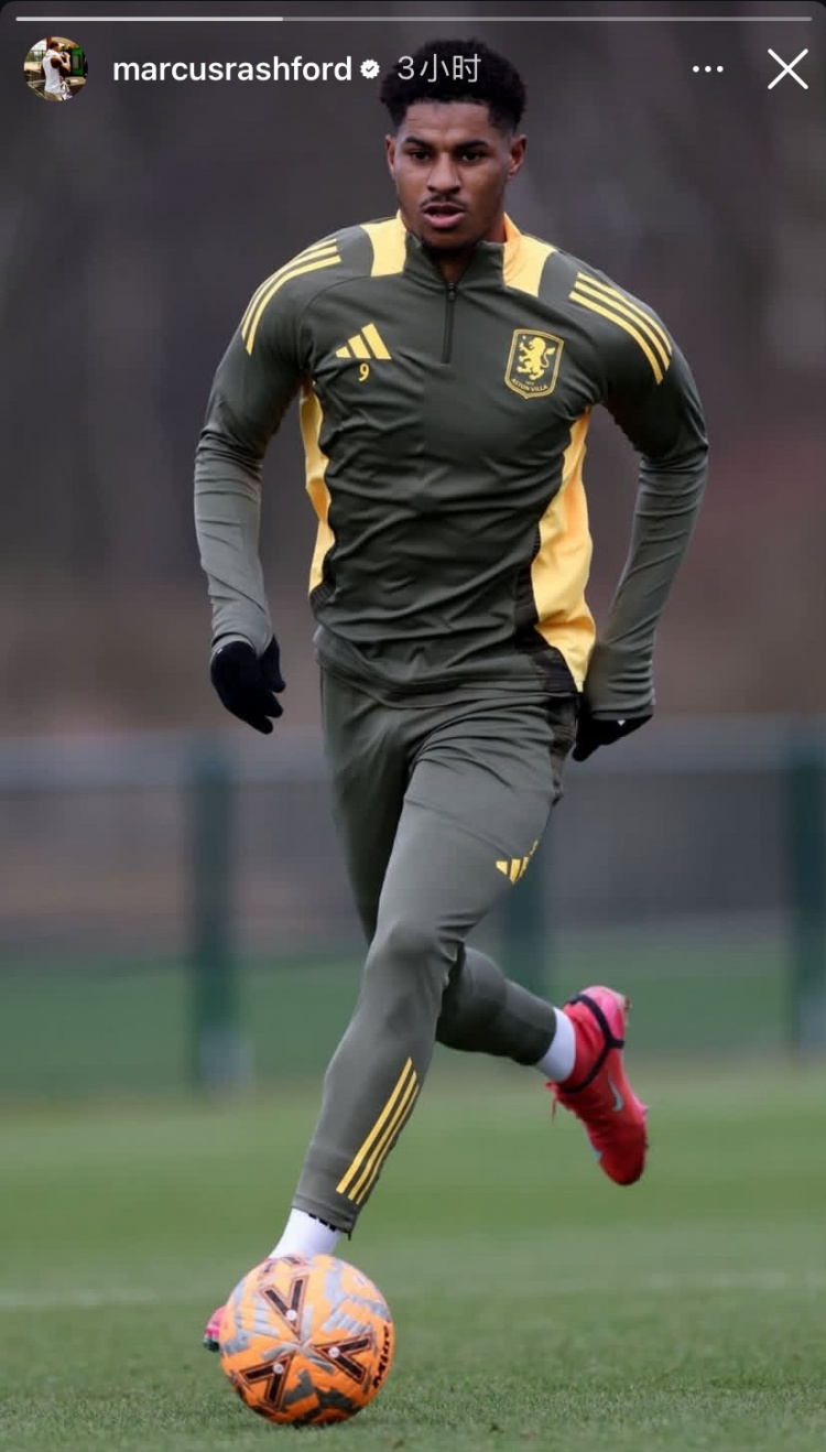 2月4日訊 維拉已經(jīng)官宣從曼聯(lián)租借拉什福德,包含4000萬鎊的選擇性買斷條款。今天,拉什福德曬出了自己維拉生涯首次訓(xùn)練的照片。