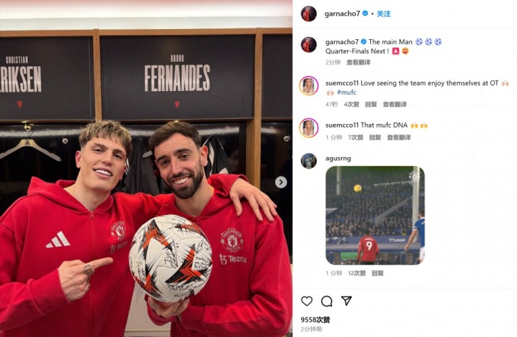 加納喬也在賽后通過社媒曬出自己在賽后更衣室和B費的合照,并手指對方:“主角人物(也可理解為“最重要的朋友”)??????下一站八強(qiáng)戰(zhàn)!?????????”