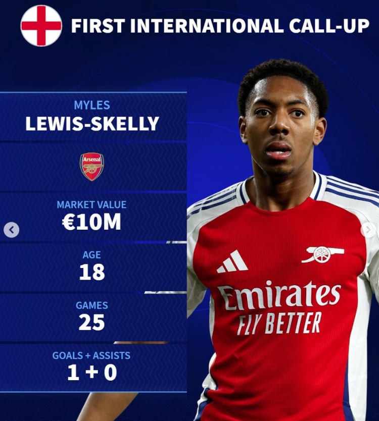 斯凱利(阿森納,英格蘭),1000萬(wàn)歐,18歲。25場(chǎng)1球0助攻