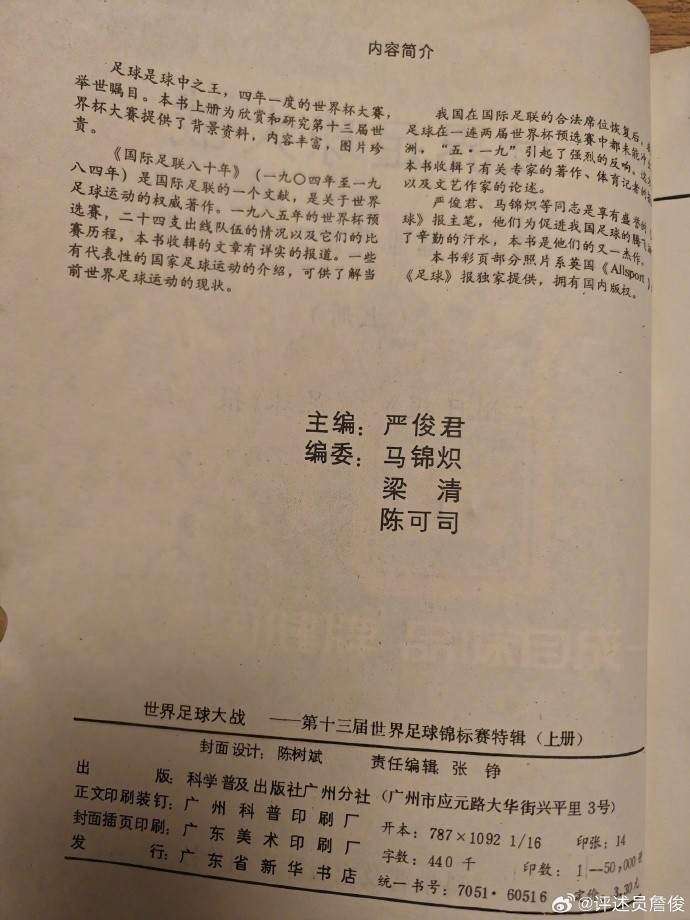父親說,這些小薄紙片挺“解渴”的。那里肯定也有嚴(yán)俊君老總的“耕耘之作”。我開始工作后,和“足球報(bào)”很多同行成為好友,可惜那時(shí)嚴(yán)總已經(jīng)退居二線,無緣相見。今晚得知他老人家駕鶴西去,心中惆悵。謝謝您!曾經(jīng)帶我們這些球迷去“看世界”……