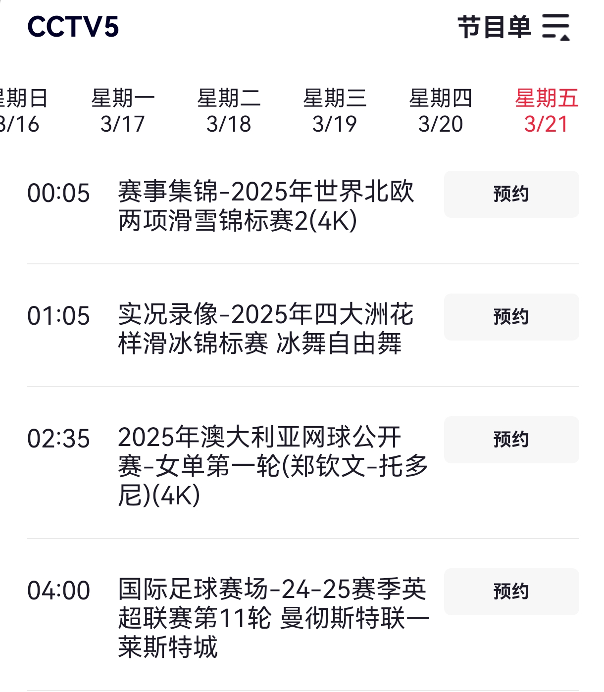 央視今日更新了3月21日節(jié)目單,在2:45的檔期上,5臺、5+臺和16臺均無國足比賽。