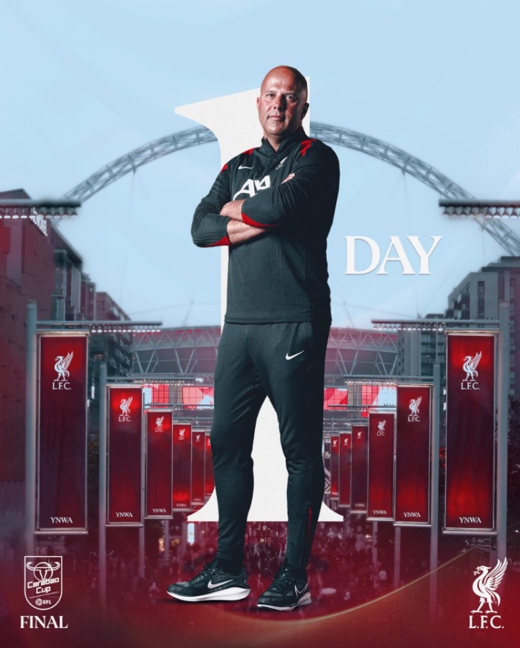 利物浦曬海報預(yù)熱聯(lián)賽杯決賽,斯洛特單人出鏡