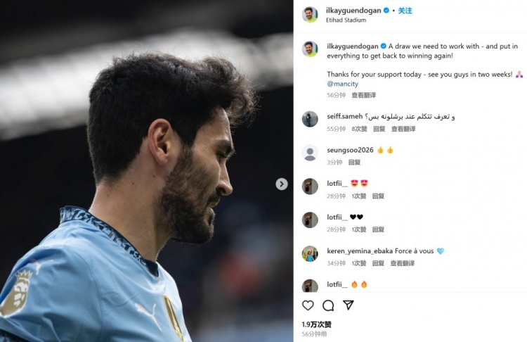 京多安表示:“我們需要汲取本場(chǎng)平局的教訓(xùn),并且在此后竭盡全力再次爭(zhēng)奪勝利。感謝球迷們今天的支持,我們兩周后再見!@曼城俱樂部”
