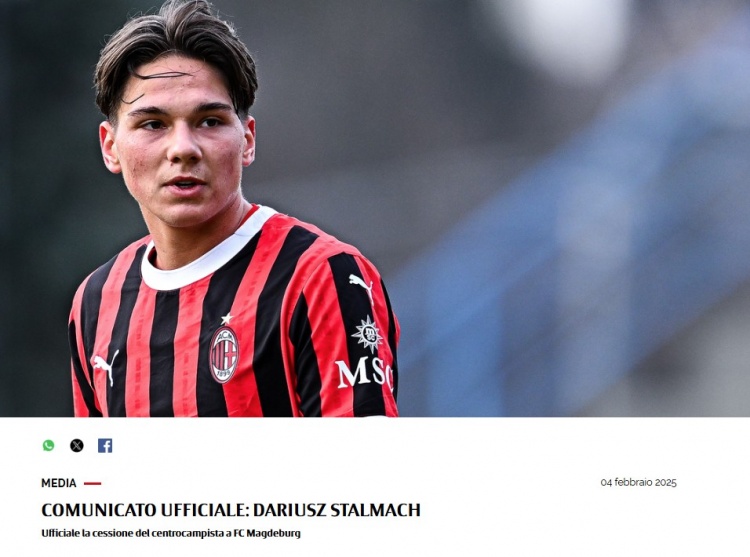 2月5日訊 AC米蘭官方宣布,青年隊(duì)中場球員斯塔爾馬赫已經(jīng)轉(zhuǎn)會至德乙馬迪堡。