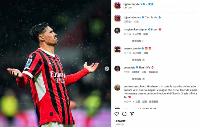 邁尼昂、邦多、普利西奇等多位隊(duì)友也現(xiàn)身評論區(qū)互動(dòng)。