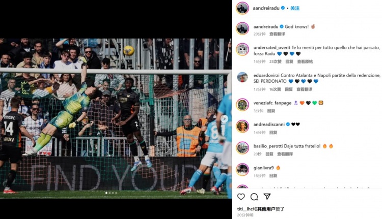 他也在賽后通過社媒曬出比賽照慶祝并配文:“只有上帝明白!”。拉杜在此前效力國米時(shí),曾因?yàn)闋幑陉P(guān)鍵戰(zhàn)失誤導(dǎo)致球隊(duì)最終未能奪得冠軍。