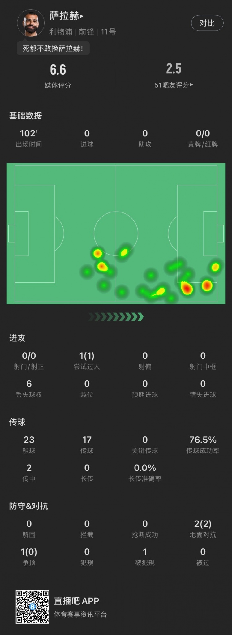 3月17日訊 本賽季聯(lián)賽杯決賽落寞,利物浦1-2不敵紐卡無緣奪冠。本場比賽,薩拉赫發(fā)揮欠佳,多項數(shù)據(jù)掛零,僅獲評6.6分。