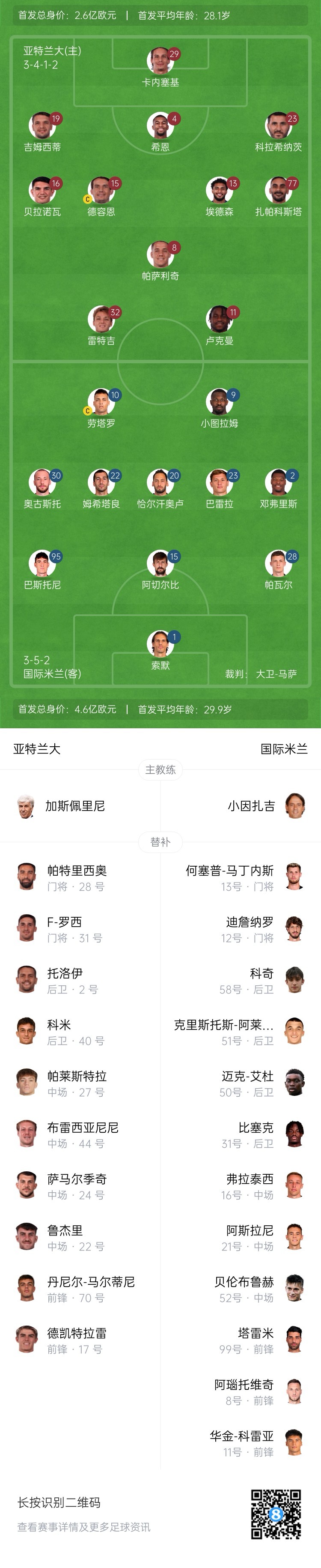 3月17日訊 意甲第29輪焦點戰(zhàn),藍(lán)黑對決!亞特蘭大主場迎戰(zhàn)國米比賽即將打響。賽前首發(fā)出爐。