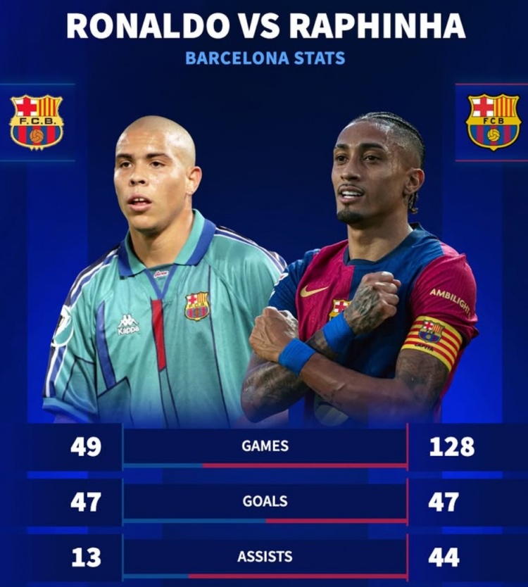 而他也已經追平了羅納爾多在巴薩的進球數,大羅為巴薩共計僅出戰(zhàn)49場比賽,貢獻了47球13助攻。