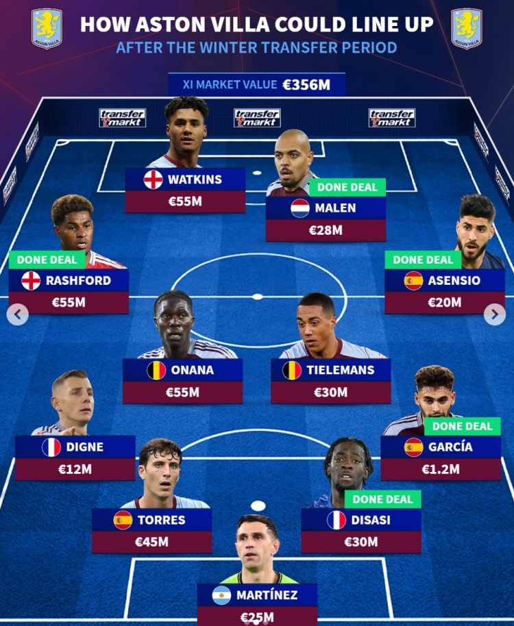 2月5日訊 阿斯頓維拉在今年冬窗引進了多位球員,《轉(zhuǎn)會市場》也據(jù)此預(yù)測了一套補強后的首發(fā)陣容。