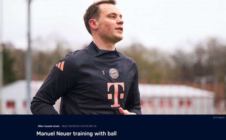 在對(duì)陣?yán)瘴謳焐臍W冠1/8決賽首回合中,諾伊爾不幸遭遇右側(cè)小腿肌肉拉傷,隨后一直缺戰(zhàn)至今。拜仁表示,在今天的訓(xùn)練中,諾伊爾首次進(jìn)行了有球訓(xùn)練。