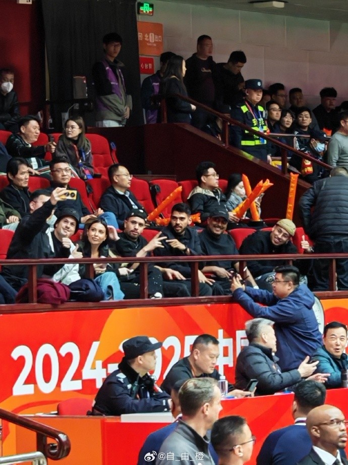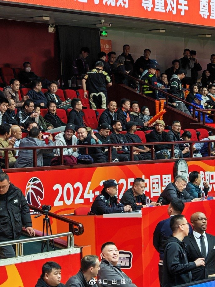 泰山隊(duì)博主“自_由_橙”曬出圖片,泰山外援克雷桑、馬德魯加、瓦科、卡扎爾現(xiàn)場(chǎng)觀戰(zhàn)CBA山東高速的主場(chǎng)比賽。