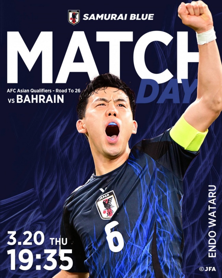 日本隊公布戰(zhàn)巴林海報:隊長遠(yuǎn)藤航單人入鏡,振臂高呼