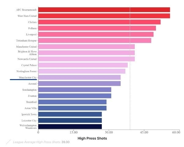 哈蘭德加盟之后,曼城的高位壓迫效率已經(jīng)跌至聯(lián)盟中游,隨著京多安和德布勞內(nèi)的老化,球隊的傳控能力又出現(xiàn)了明顯下降,瓜迪奧拉的球隊失去了賴以成名的殺招。
