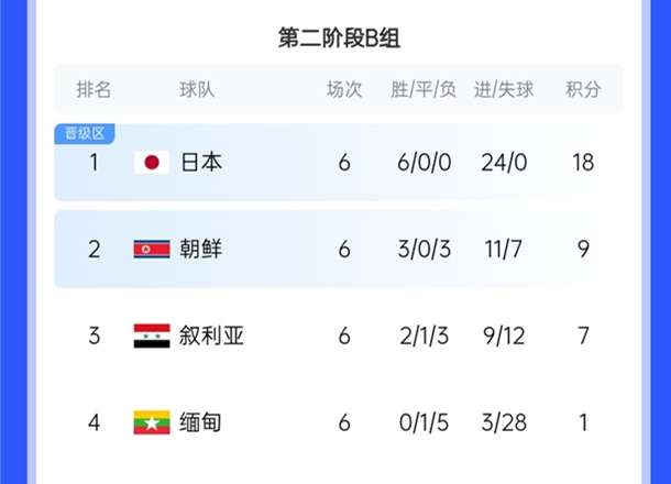 而在世預賽第二階段的36強賽中,日本隊6戰(zhàn)全勝,狂轟24球,1球未丟。