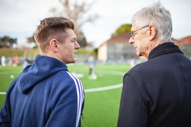 3月20日訊 目前擔(dān)任國(guó)際足聯(lián)全球足球發(fā)展主管的溫格造訪了克羅斯的青訓(xùn)學(xué)校,并為他頒發(fā)了FIFA2024年度最佳陣容獎(jiǎng)杯??肆_斯也更新社媒向溫格致謝。