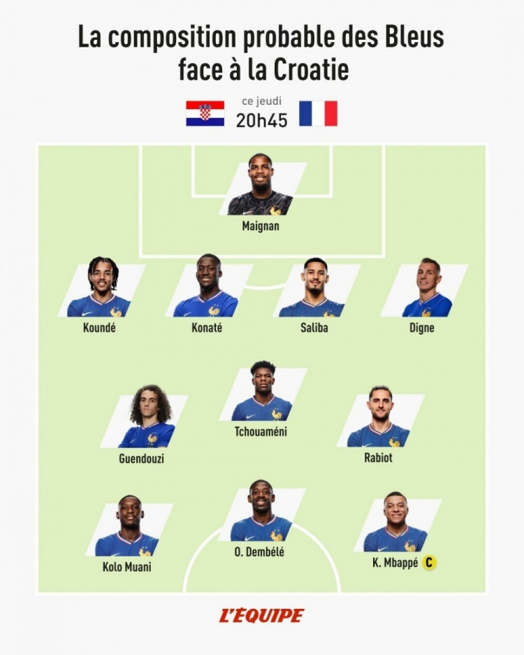 3月20日訊 北京時間明天凌晨3點45分,法國將在歐國聯1/4決賽首回合比賽中客場對陣克羅地亞?!蛾爤蟆奉A測了法國隊本場比賽的首發(fā)陣容,姆巴佩、登貝萊、穆阿尼三箭齊發(fā)。