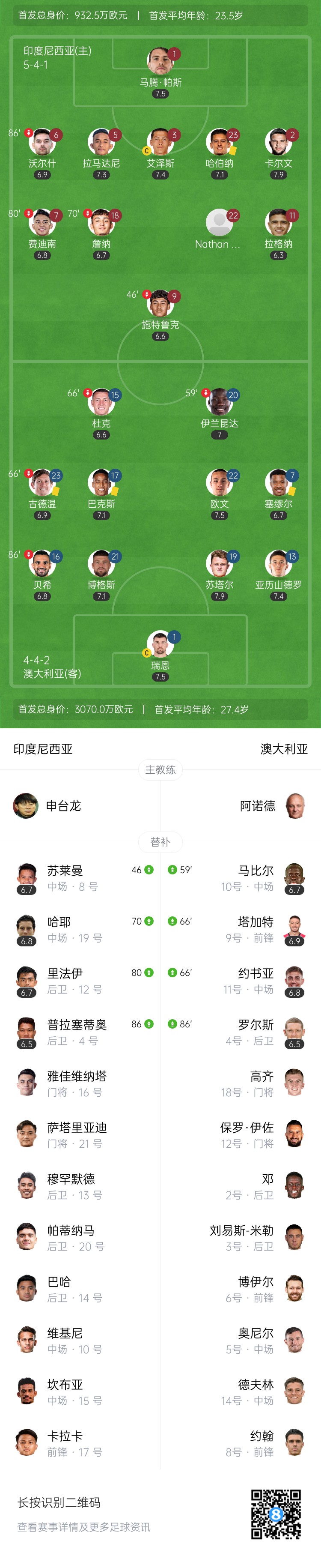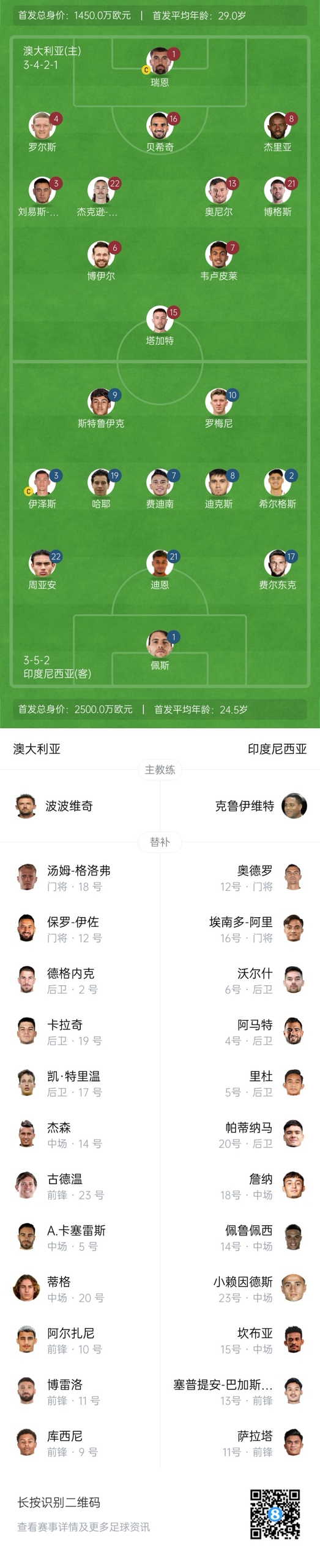 03月20日訊 國足同組對手澳大利亞vs印尼首發(fā)出爐,而雙方的身價對比已經(jīng)發(fā)生了驚人的逆轉。