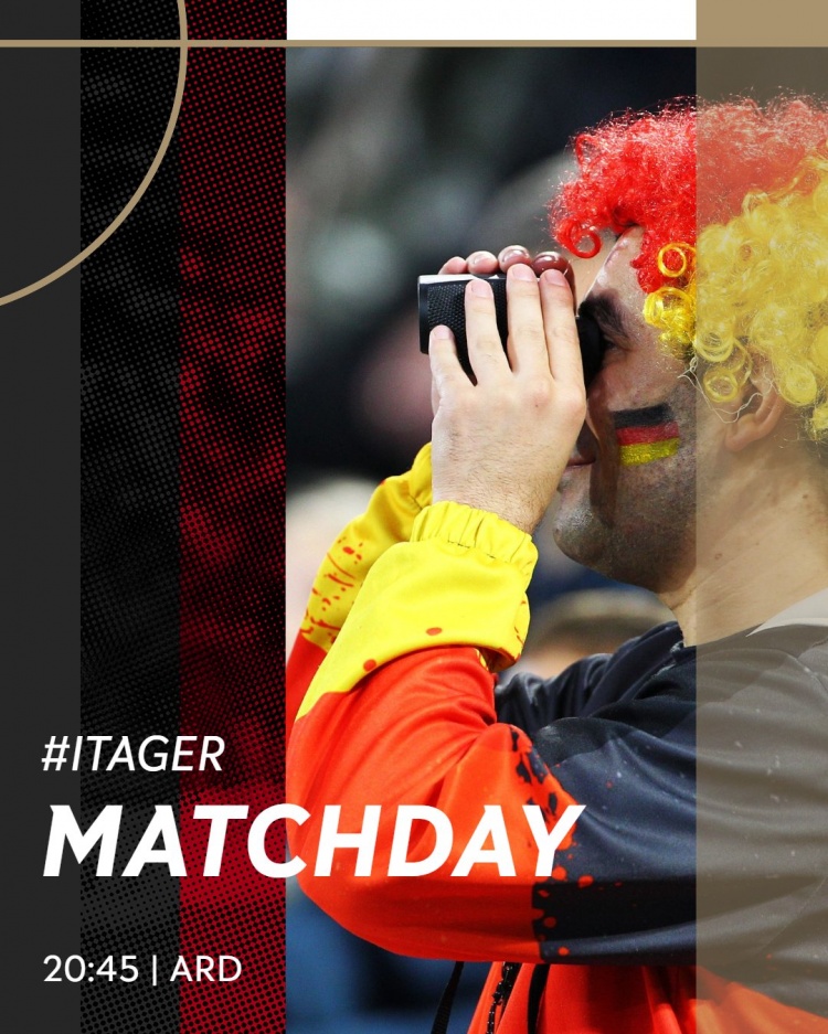德國(guó)隊(duì)官方社媒發(fā)布海報(bào)預(yù)熱這場(chǎng)比賽,海報(bào)內(nèi)容為德國(guó)球迷手拿望遠(yuǎn)鏡觀賽的場(chǎng)景。