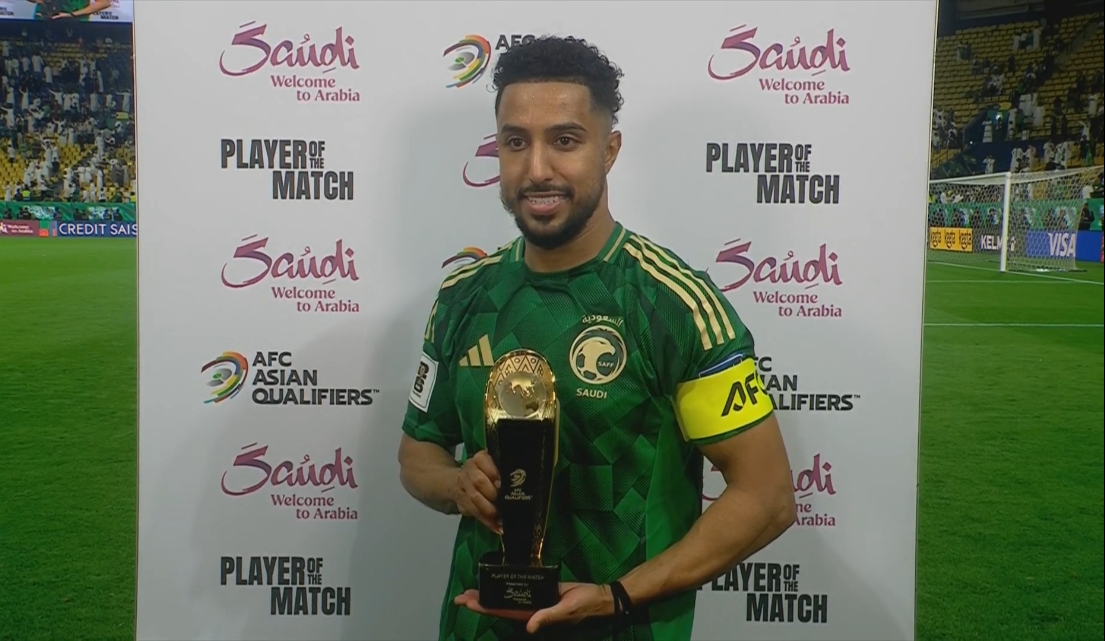 03月21日訊 國足本輪18強(qiáng)賽0-1不敵沙特。賽后,多薩里在現(xiàn)場領(lǐng)取了全場最佳獎杯。