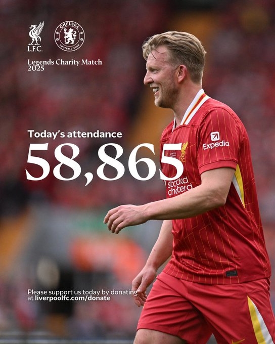 數(shù)據(jù)統(tǒng)計顯示,本場比賽共計有58865名觀眾到場觀看了這場比賽,本場比賽收入也將捐贈給慈善機構(gòu)。