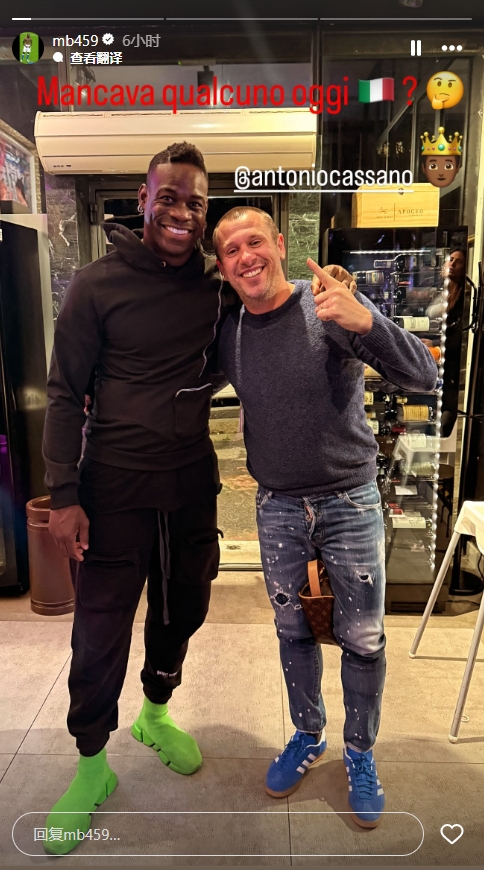3月24日訊 巴洛特利更新社媒動(dòng)態(tài),曬出與卡薩諾的合照。