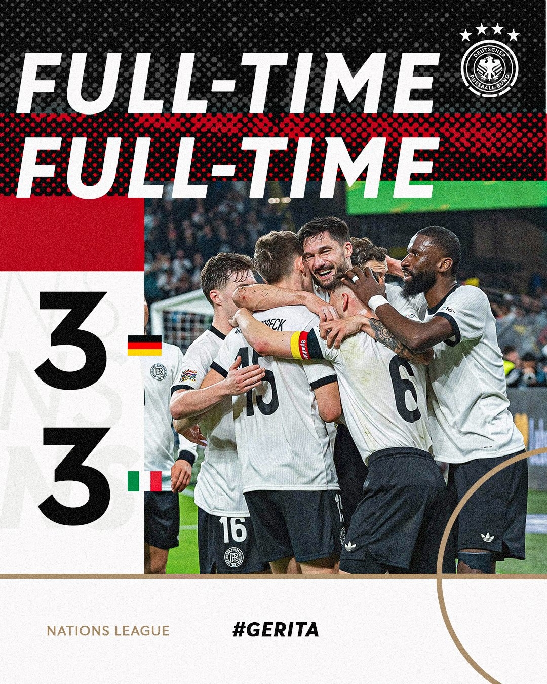 歐國聯(lián)八強戰(zhàn)次回合,德國3-3,總比分5-4戰(zhàn)勝意大利晉級,基米希1射2傳,基恩梅開二度。