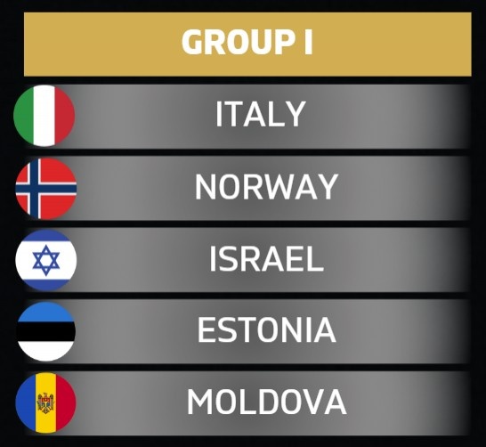 意大利分入世歐預(yù)賽I組:挪威、以色列、愛沙尼亞、摩爾多瓦同組